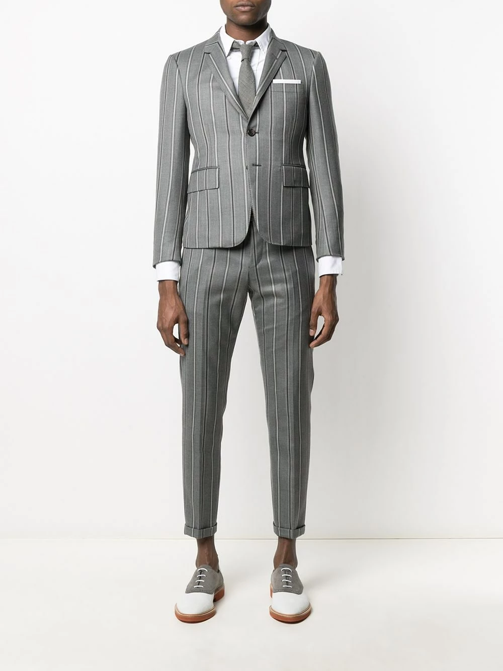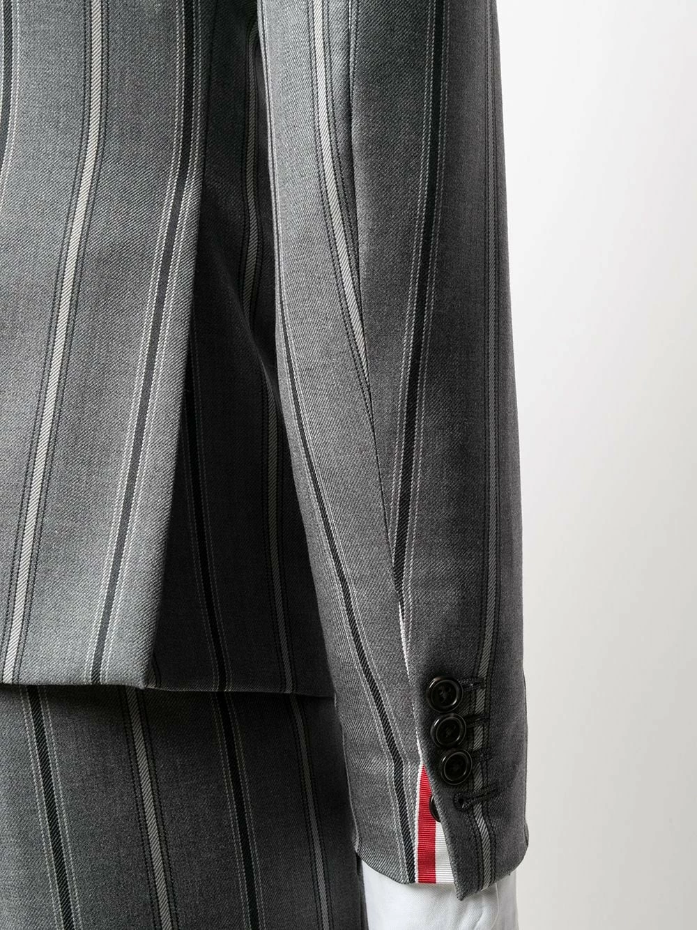 Stripe up your life. In a vertical striped pattern and single-breasted fastening, this blazer from Thom Browne is here to inject some fun into your formalwear. What are you waiting for?