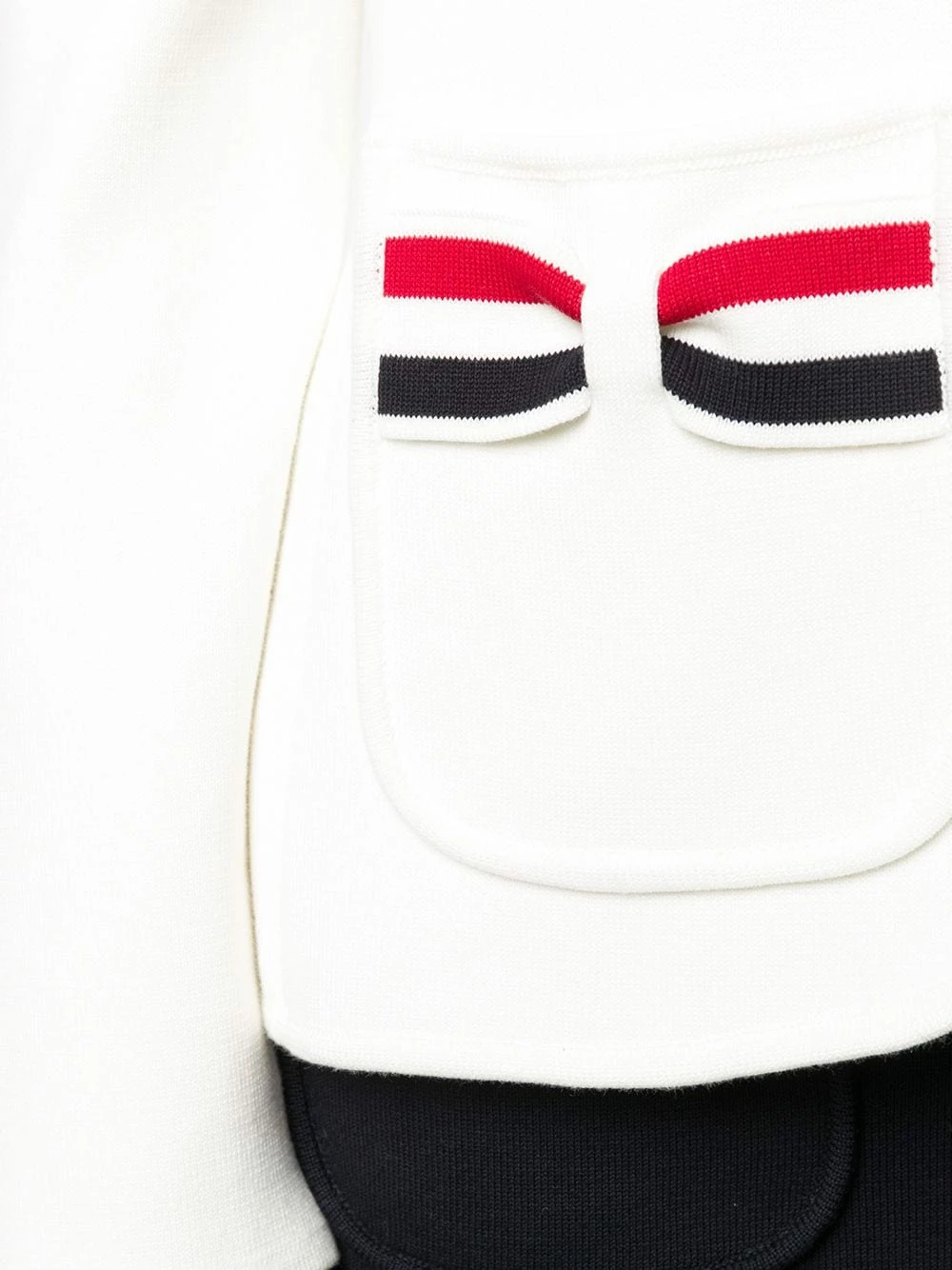 We all need a good blazer in our life, and this could be yours. This white cotton striped bow blazer from Thom Browne features bow detailing, classic lapels, front button fastening and two side patch pockets.