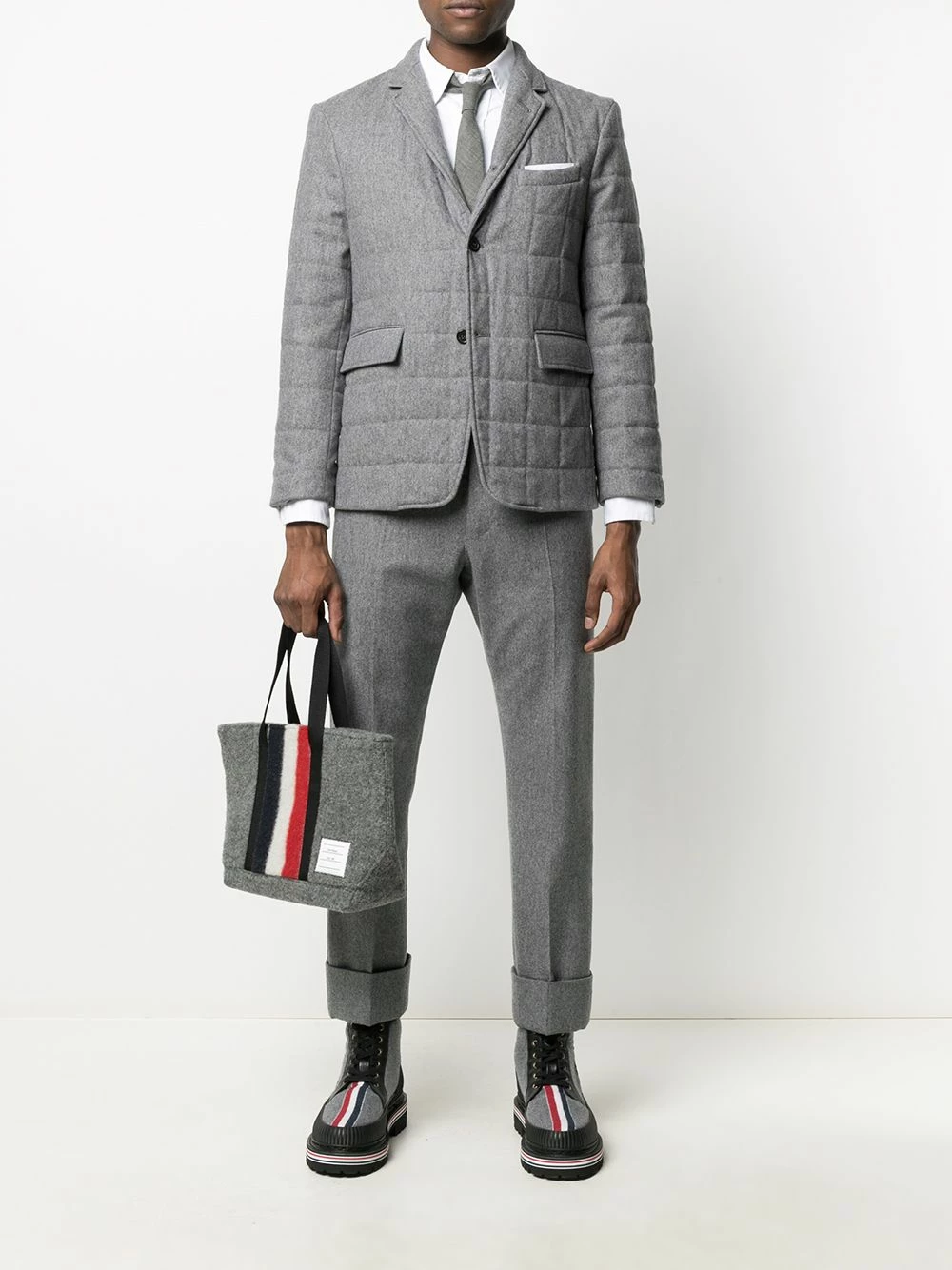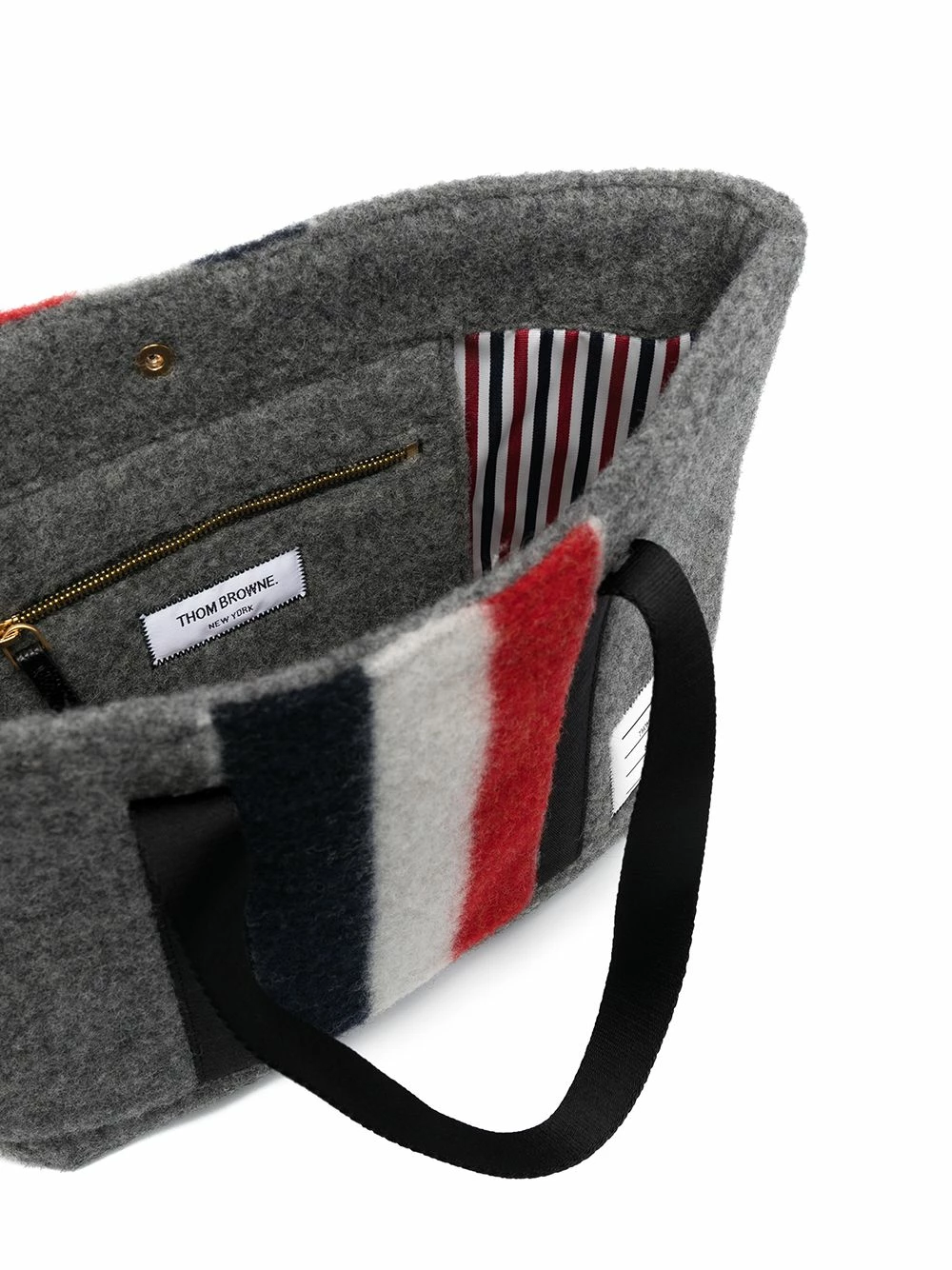 There’s plenty of space inside Thom Browne’s felt tote bag – you won’t need to leave anything at home. It’s as practical as it is stylish. So go ahead and earn your fashion stripes.