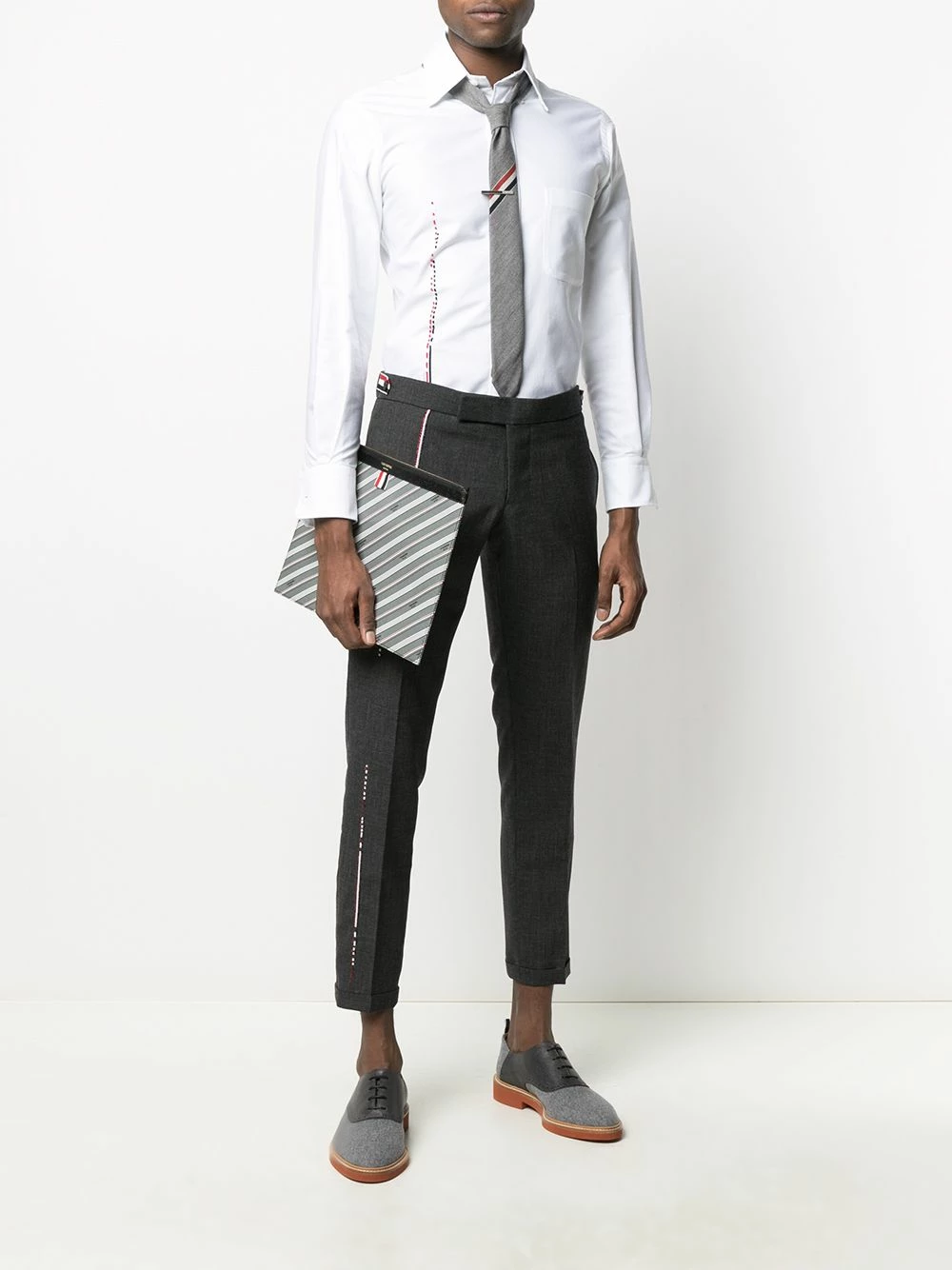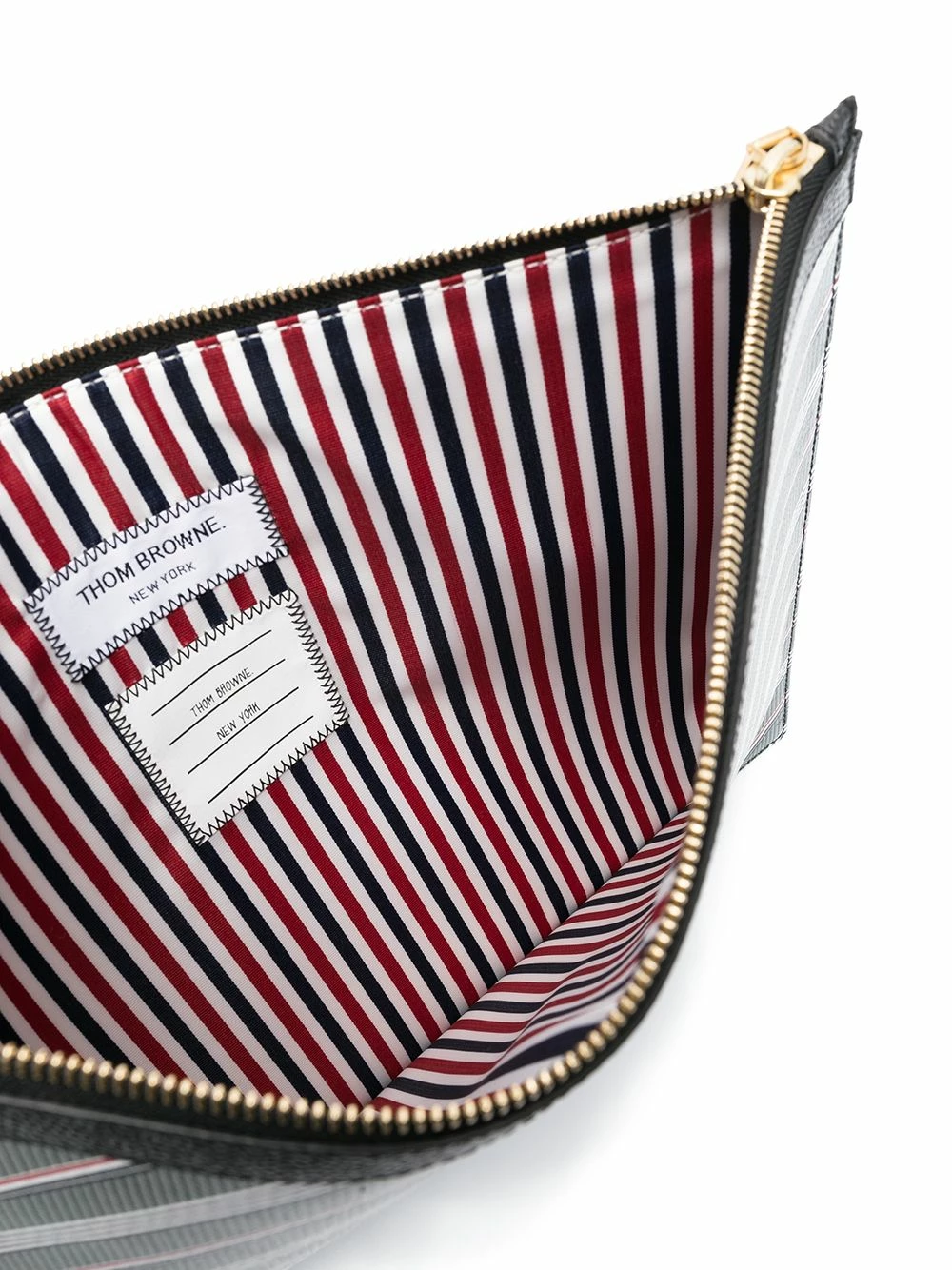Carry around your essentials in style with Thom Browne’s pouch. Perfectly sized for everyday wear, it’s topped with the brand’s signature all-over. Signed, sealed, delivered.