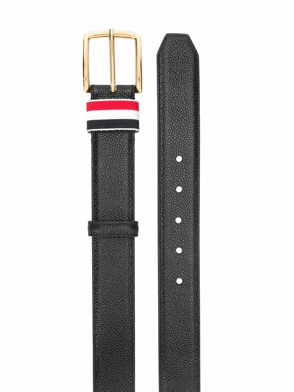 It’s a universal truth that accessories make the outfit. This black calf leather striped loop pebbled belt from Thom Browne, however, will make your whole day. Treat yourself. Featuring a pebbled leather texture, a front buckle fastening, gold-tone hardware, a pointed tip, punch hole detailing and stitching details.