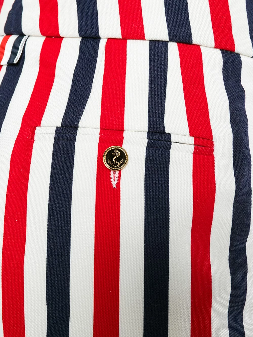 Red, white and blue cotton striped mini shorts from Thom Browne.