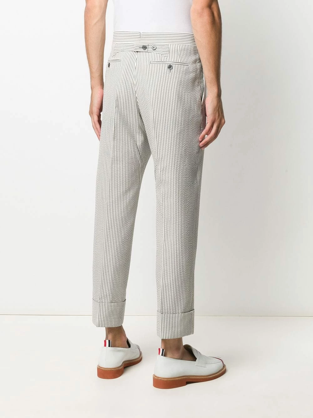You better get used to being the centre of attention. Designed with a vertical striped pattern, these Thom Browne tailored trousers will make you stop the traffic. So catchy, so chic.