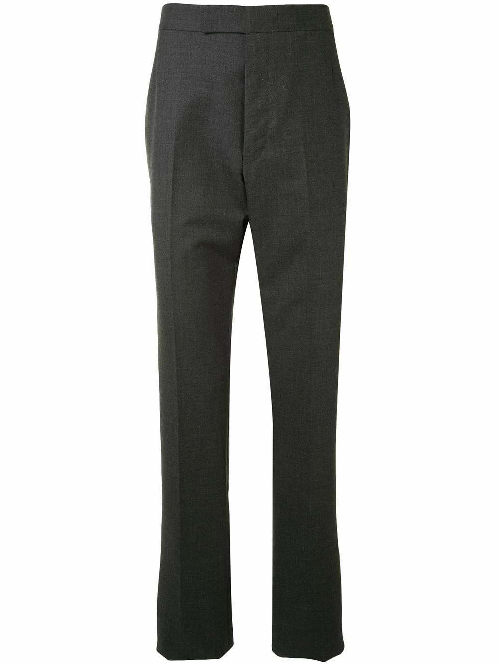 You can’t go wrong with Thom Browne’s classic backstrap trousers. Crafted in Italy from dark grey super 120s twill, the pair’s leg is cropped thanks to an upturned hem. Perfect to show off those ankles. Featuring a straight leg, a high rise, a concealed front fastening, a back slit strap, two back buttoned welt pockets, a turned up hem and a cropped length.