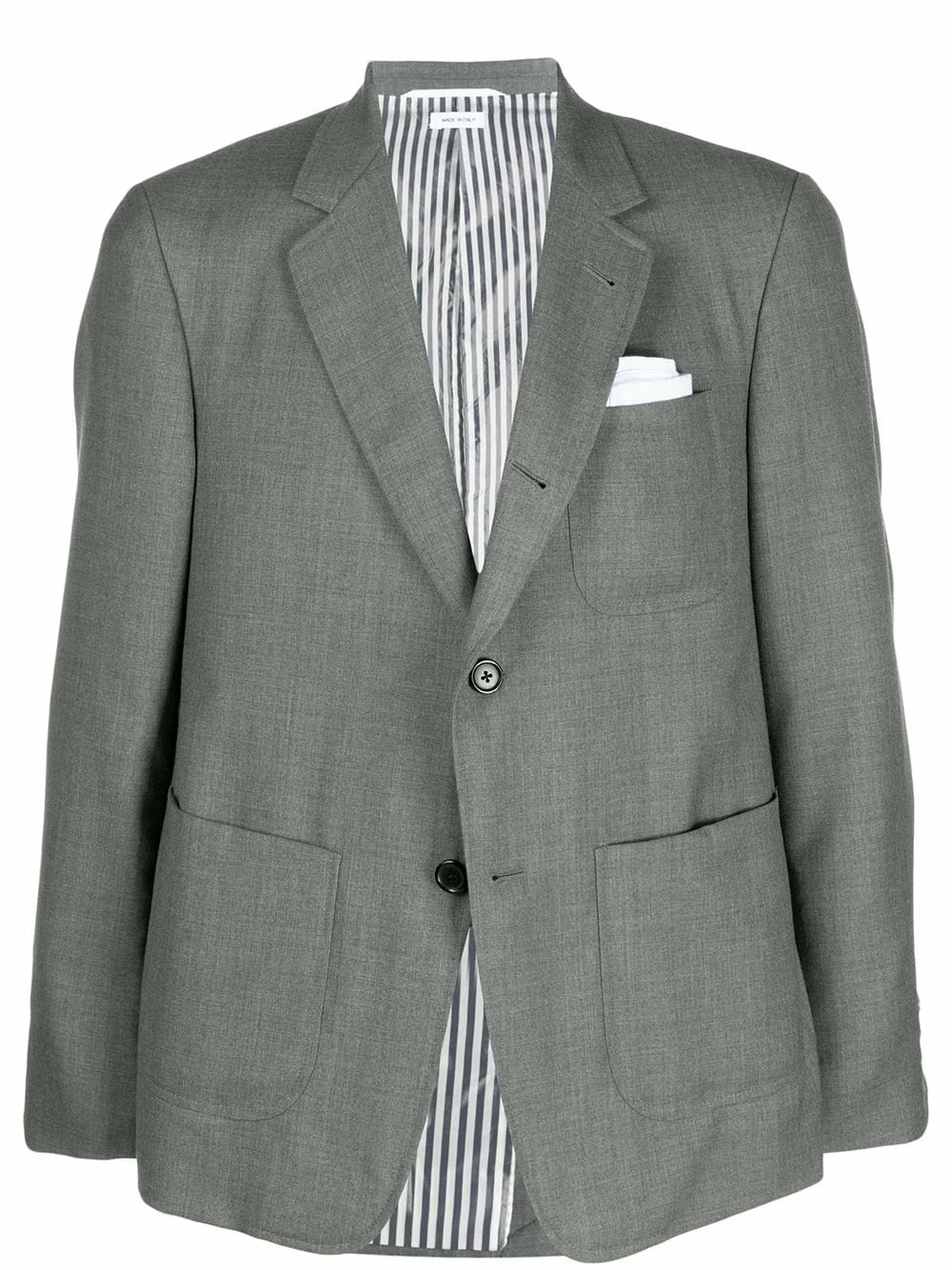 One thing we love about classic workwear: those huge pockets you get on everyday jackets. Apparently, the folks at Thom Browne are huge fans as well, because they’ve reimagined a tailored twill blazer to have these ultra-functional pockets.