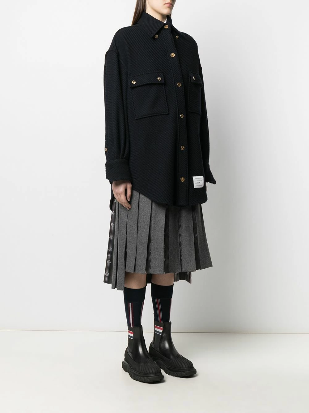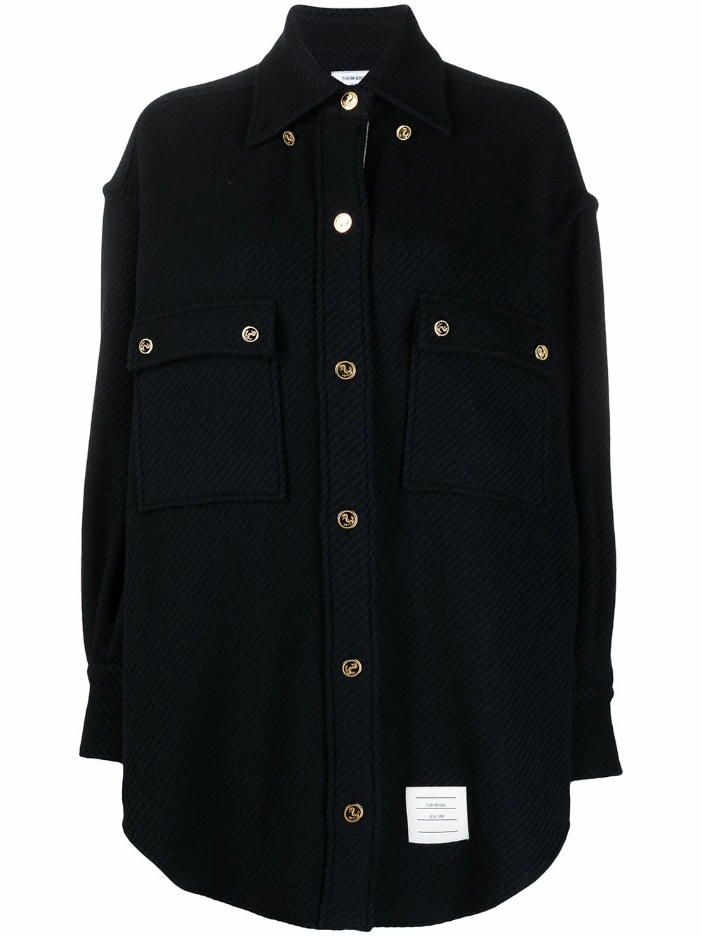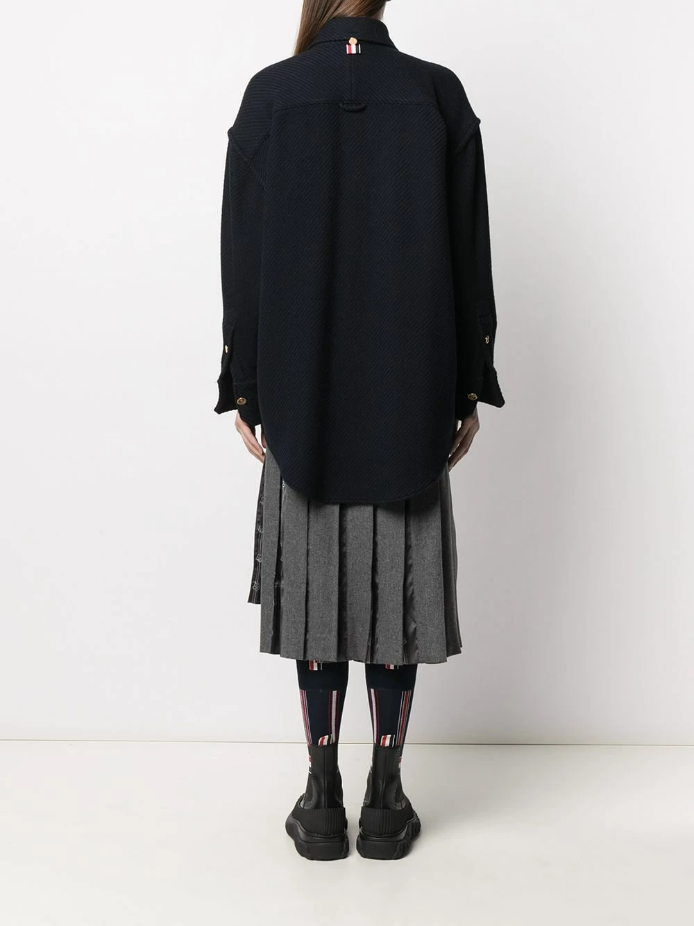 Elevated wardrobe staples, courtesy of Thom Browne. Crafted from twill cashmere tweed, this supersized shirt will add a touch of refinement to your outfit. Exquisite.
