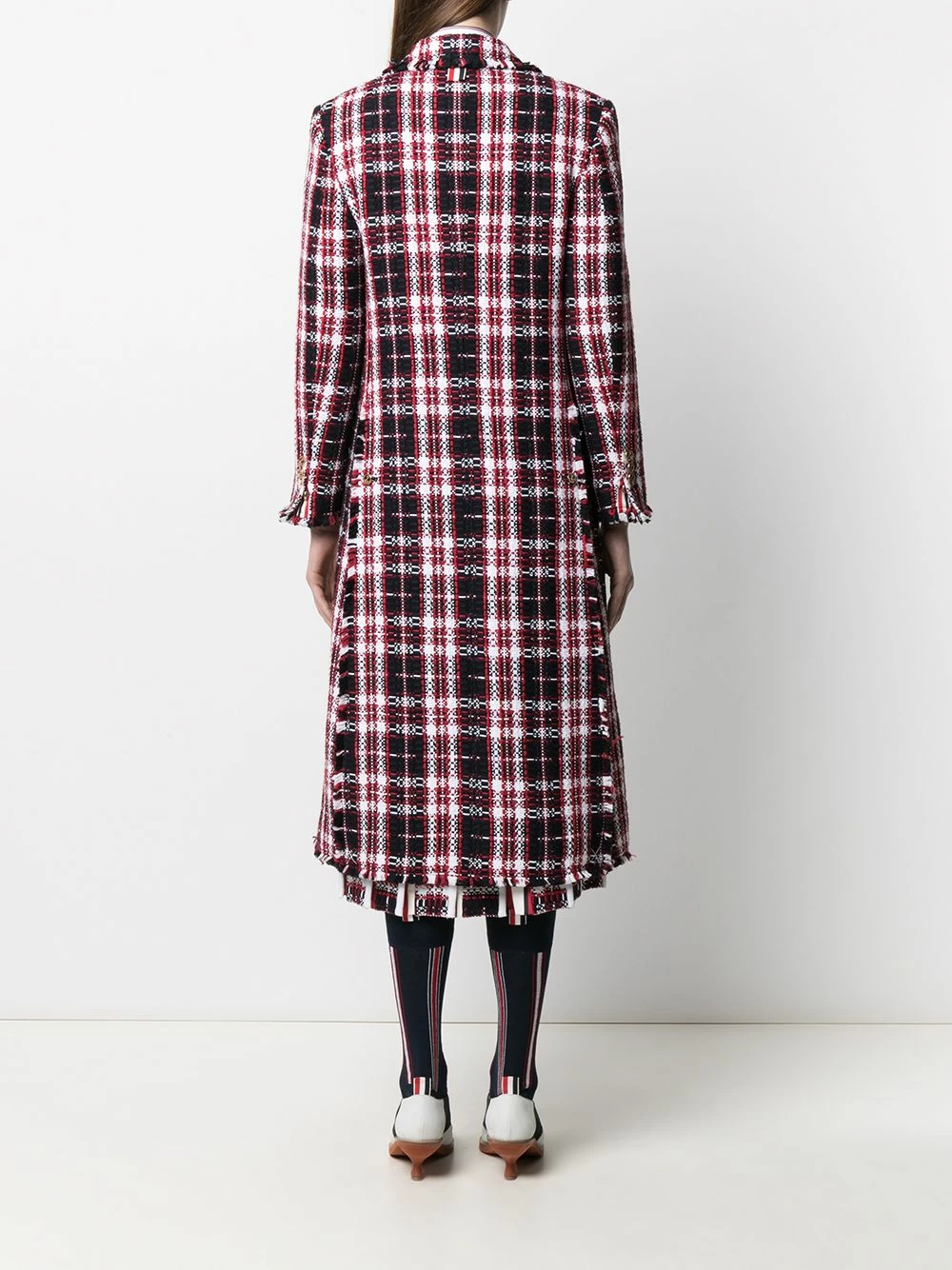 Incorporate Thom Browne’s elegance into your wardrobe. Crafted from tweed, this tartan overcoat will have you exuding refinement like no other. Contemporary tailoring.