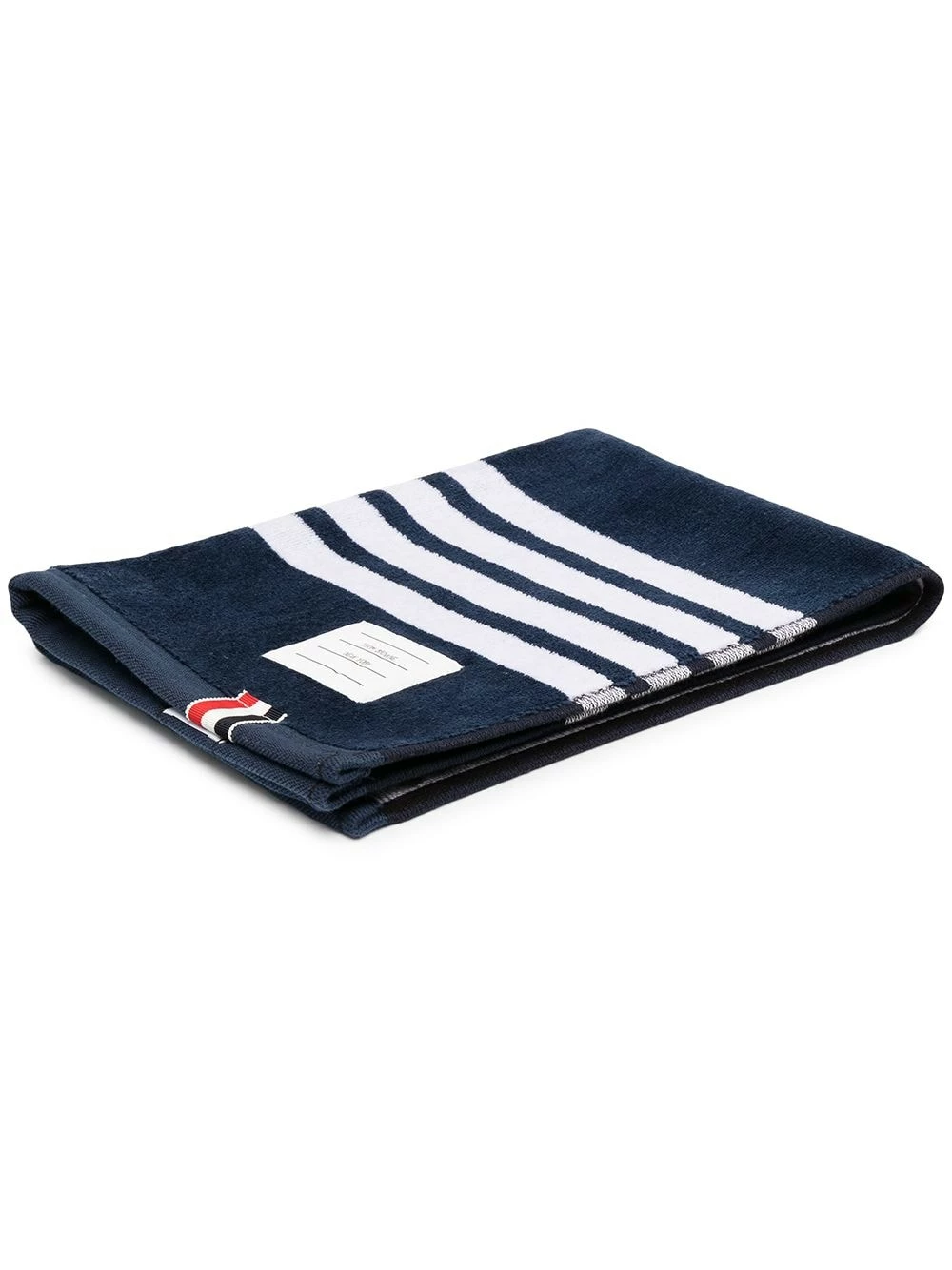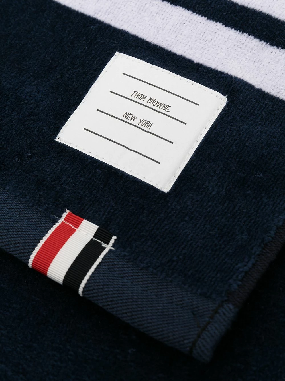 Whether hitting the beach or the gym. This navy cotton towel from Thom Browne will make the perfect companion for any of your adventures. Finished with their signature 4-Bar stripe running along the edge, you’ll always be covered.