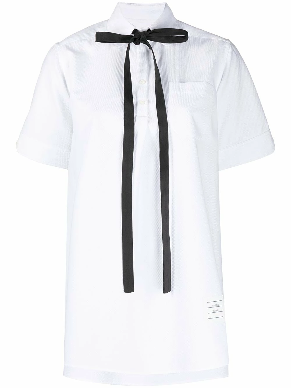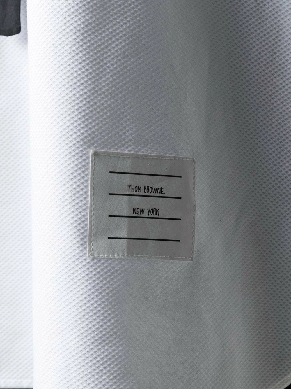 Take your style smarts to the top. With a front tie fastening detail and logo patch to the side, Thom Browne excels your workwear wardrobe with impeccible tailoring. Good work.