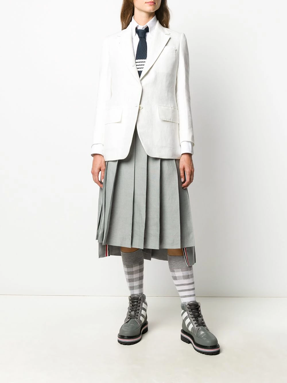Thom Browne tonal 4-Bar pleated skirt