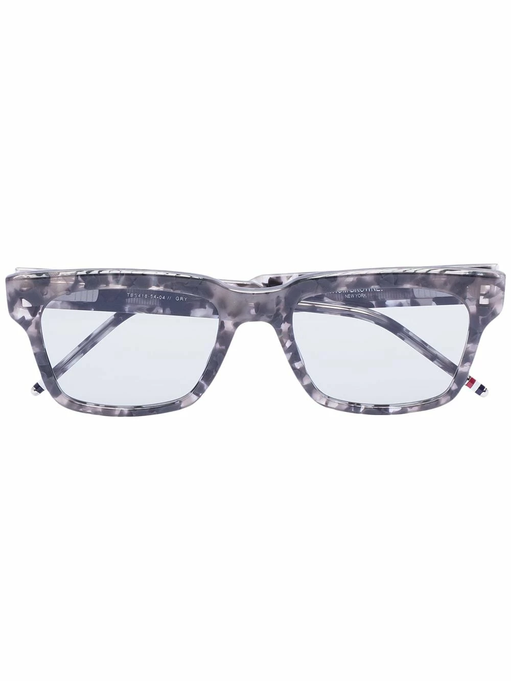 Looking for classic wardrobe pieces with a distinctive edge? Thom Browne will give you an easy route there. These grey acrylic tortoiseshell-effect sunglasses from Thom Browne feature straight arms with angled tips, square frames and light blue tinted lenses. This item comes with a protective case.