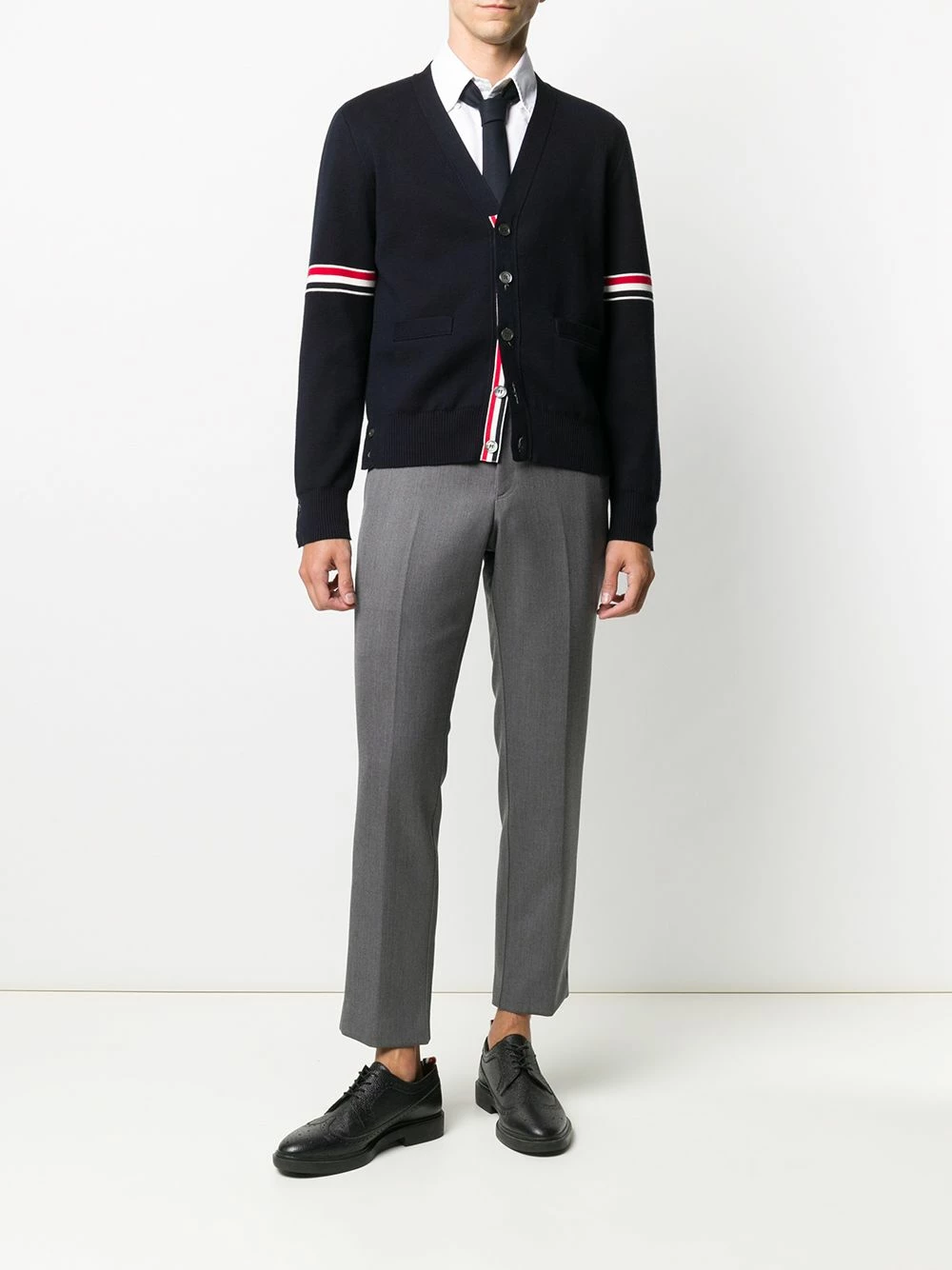 There are approximately eight million things to talk about when it comes to this Thom Browne cardigan, but we’d like to concentrate on the Milano stitching. If you look closely, the textured weaving is the result of two yarns being knit diagonally. We always knew that, and definitely didn’t just Google it out of amazement. Nuh-uh.
