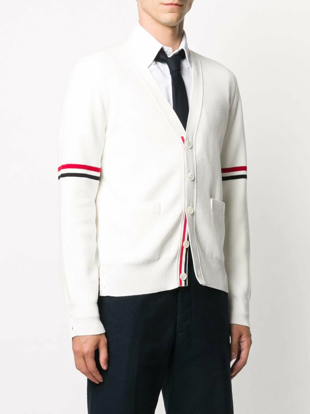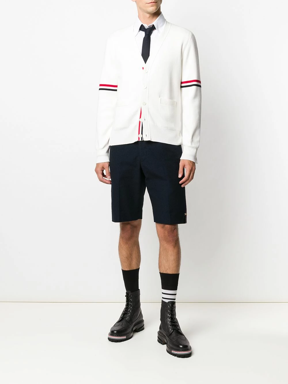 There are approximately eight million things to talk about when it comes to this Thom Browne cardigan, but we’d like to concentrate on the Milano stitching. If you look closely, the textured weaving is the result of two yarns being knit diagonally. We always knew that, and definitely didn’t just Google it out of amazement. Nuh-uh.