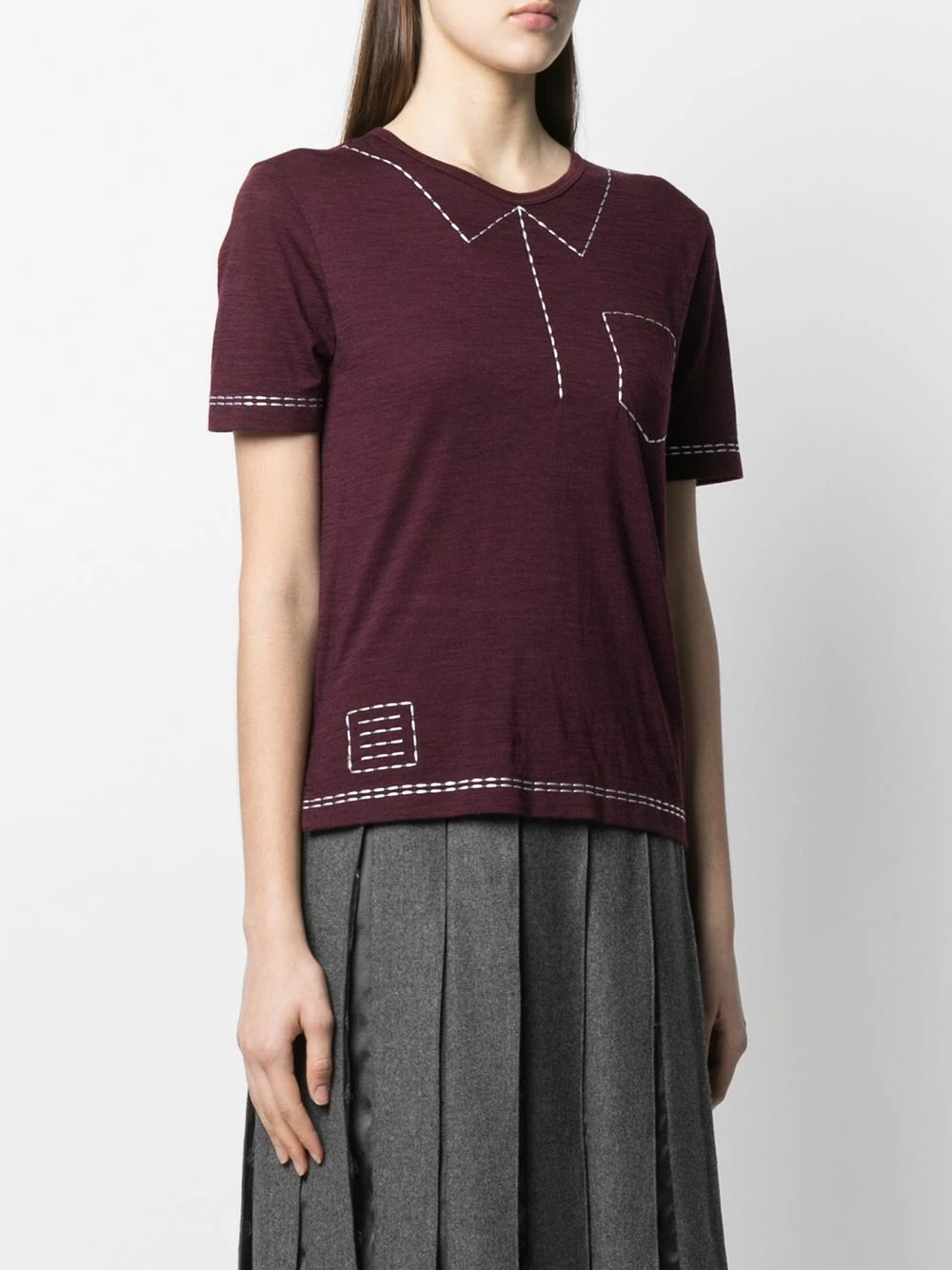 Thom Browne adds a playful twist to your ensemble. Crafted from wool jersey, this T-shirt features Trompe-l’œil embroidery that will make this piece look like a polo shirt. You’ll fool them alright.