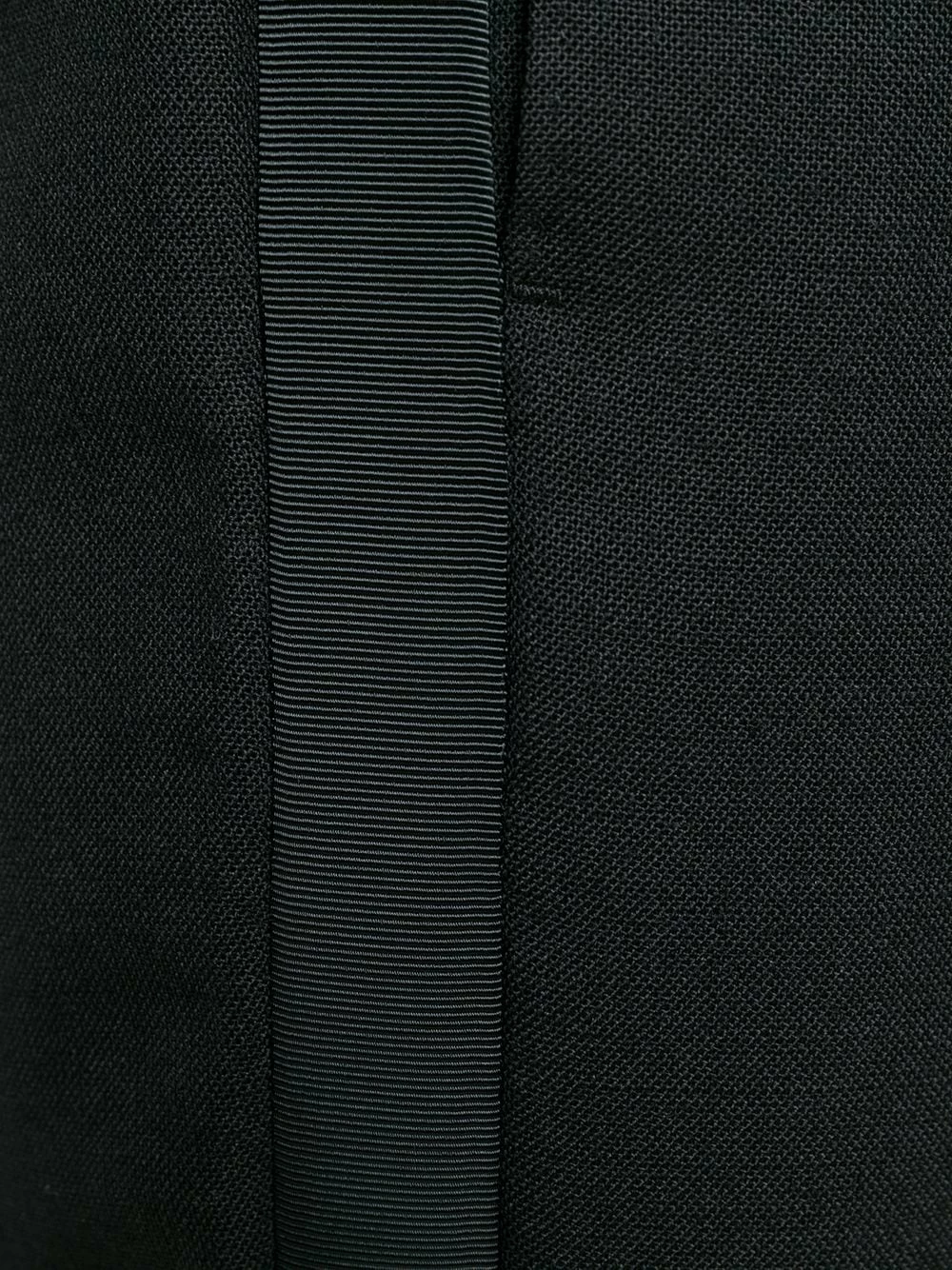 Since its launch in 2003, Thom Browne’s namesake label has gained notoriety for its clean designs and use of luxury materials, as showcased by these black backstrap trousers with a tuxedo stripe in 2Ply Fresco. Featuring a concealed front fastening, side pockets, two back buttoned welt pockets, turn up hems, pleated details, a cropped length and a tricolour grosgrain tab on the rear.