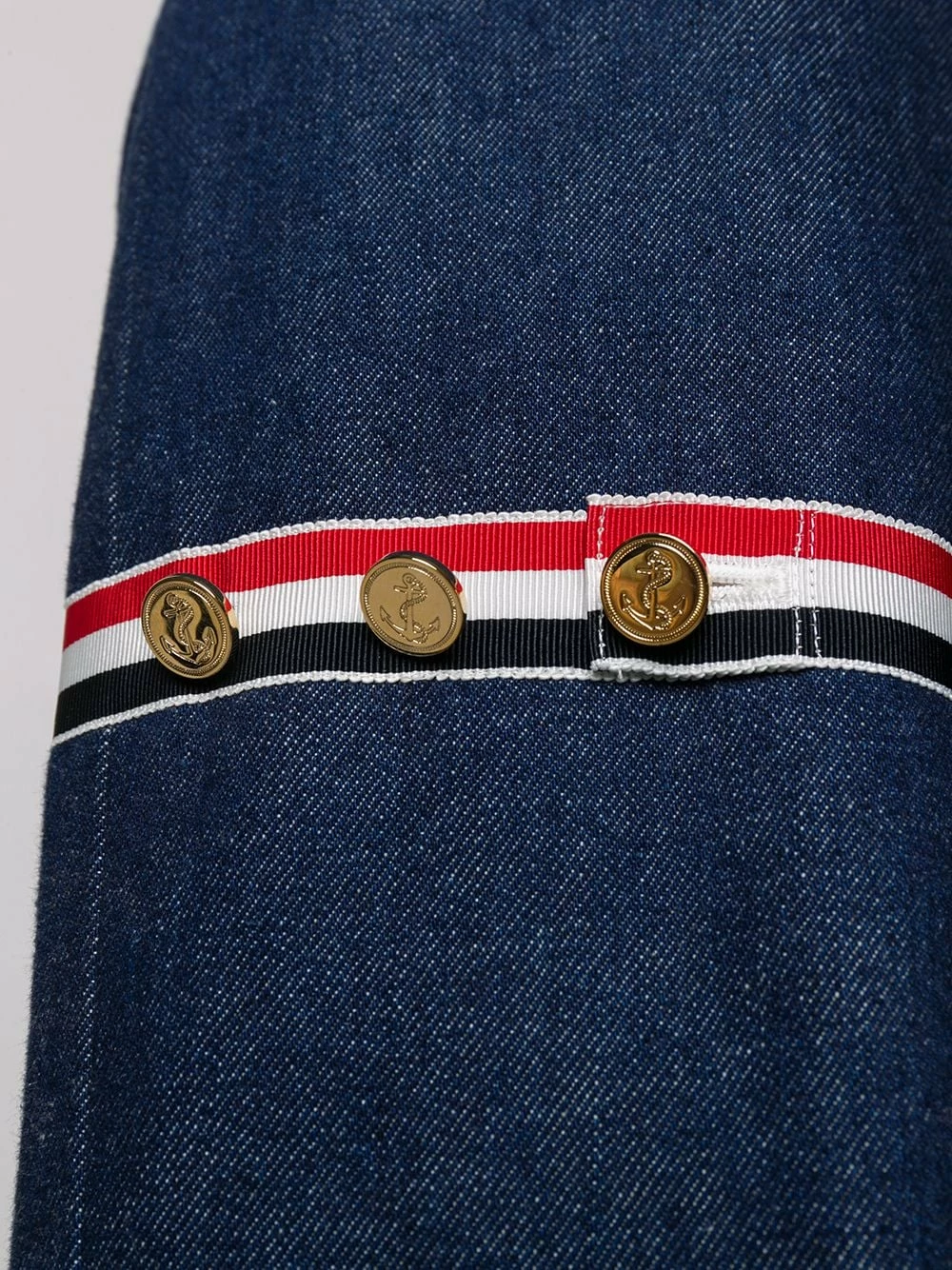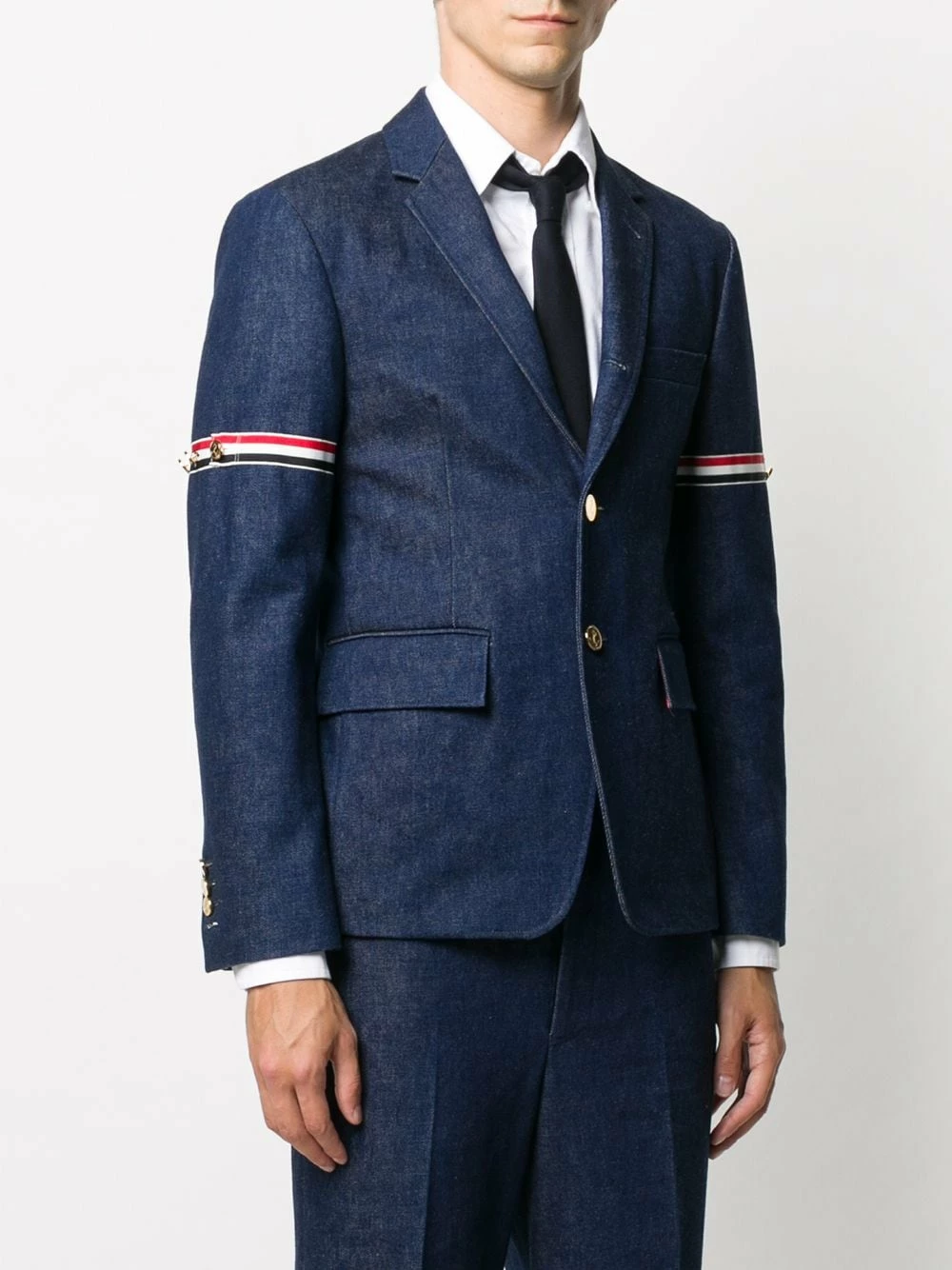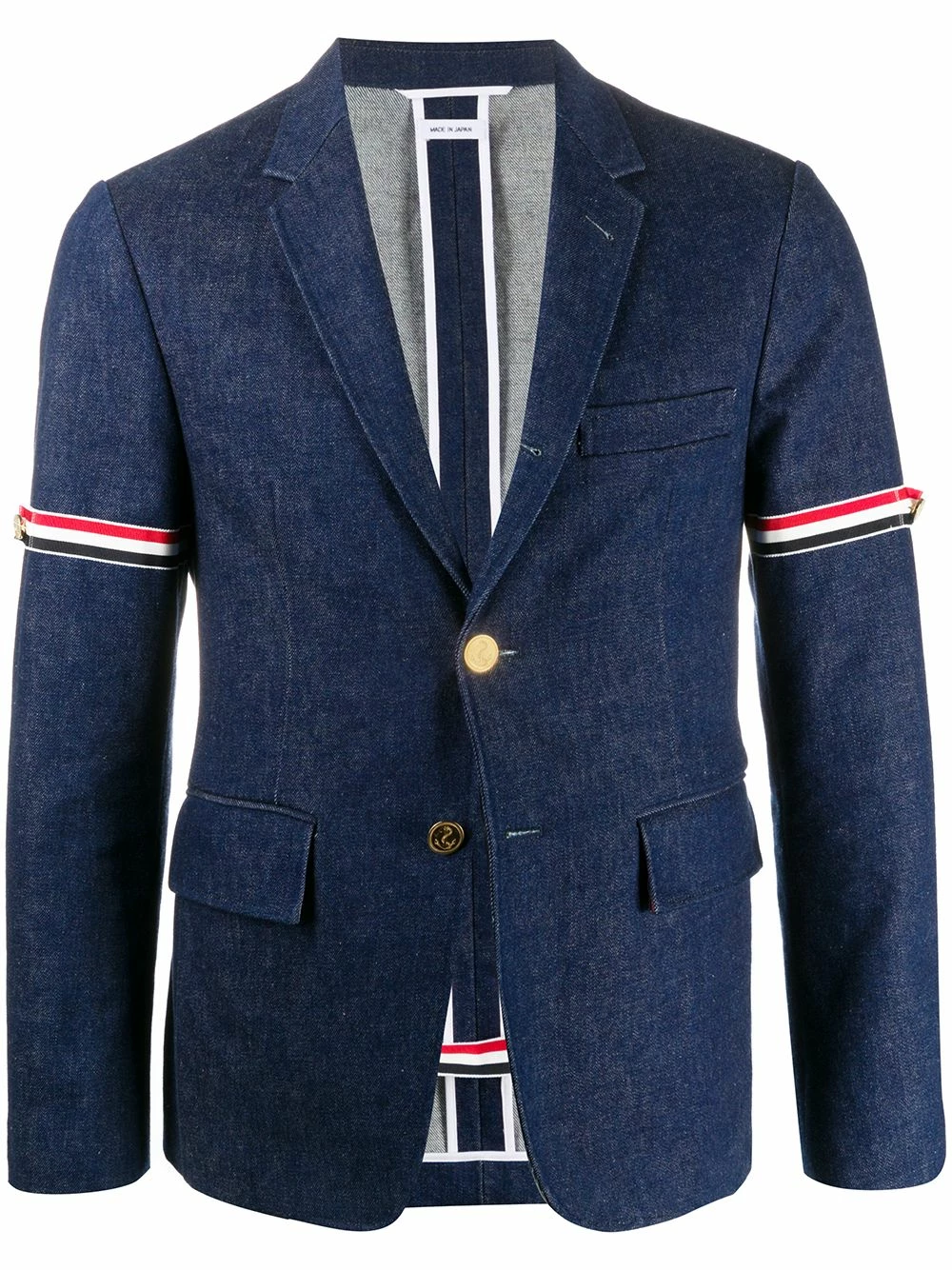 Show off your Thom Browne stripes in this single-breasted blazer. Tailored in cotton, its smart design is adorned with the RWB stripe to the arm. Now everyone knows whose side you’re on.