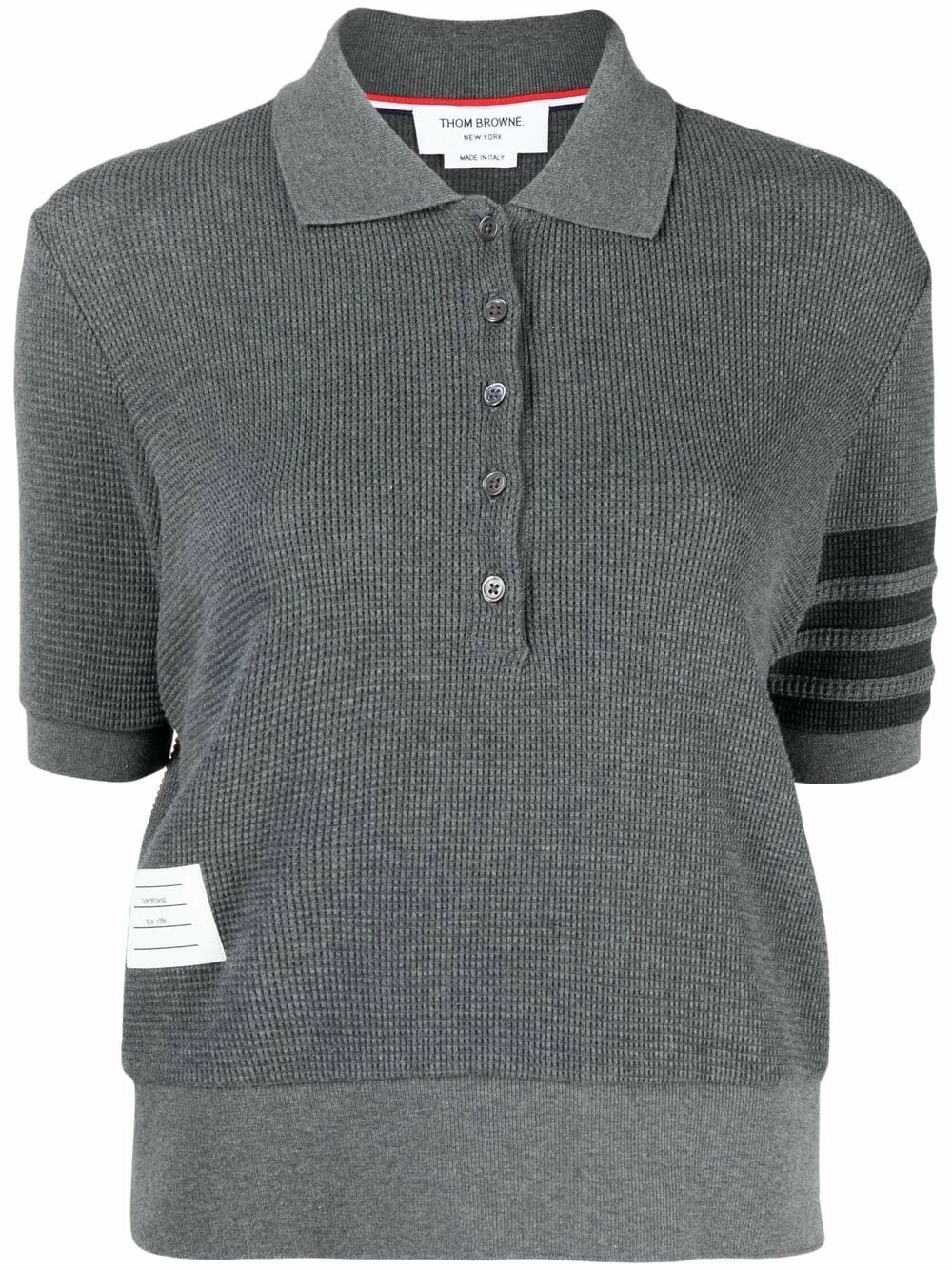 Looking for a new day-to-day uniform? Introducing this waffle-knit polo shirt from Thom Browne. It won’t let you down.