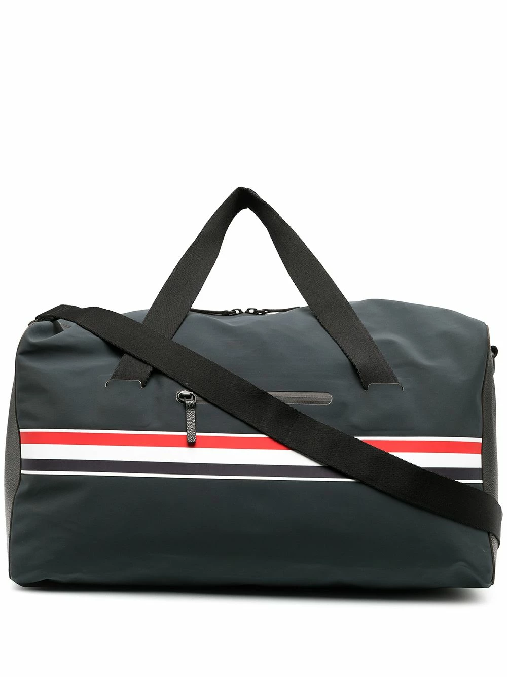 Long weekend away approaching? Let Thom Browne get you prepared with this waterproof welded duffle bag showcasing the three-stripe detailing to the straps. You’ll be finding excuses to book another one soon after. Featuring a detachable and adjustable shoulder strap, top handles, a top zip fastening, a main internal compartment, a front zip pocket, Select a atribute and RWB stripe.