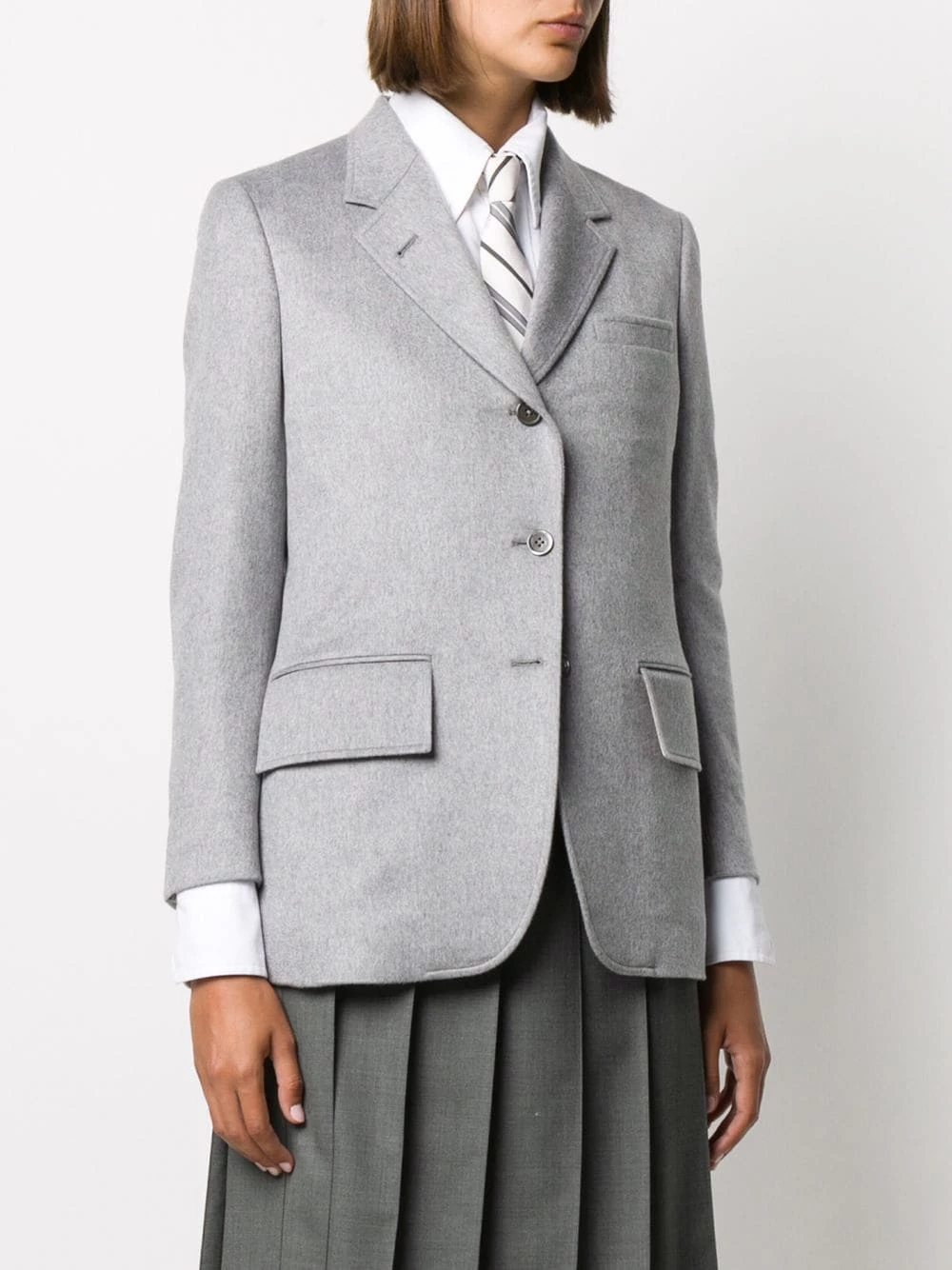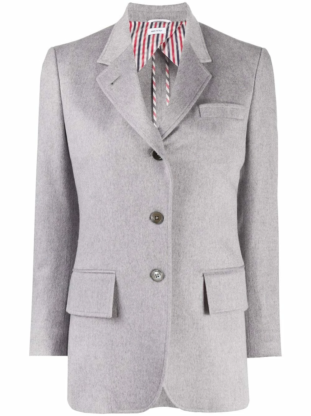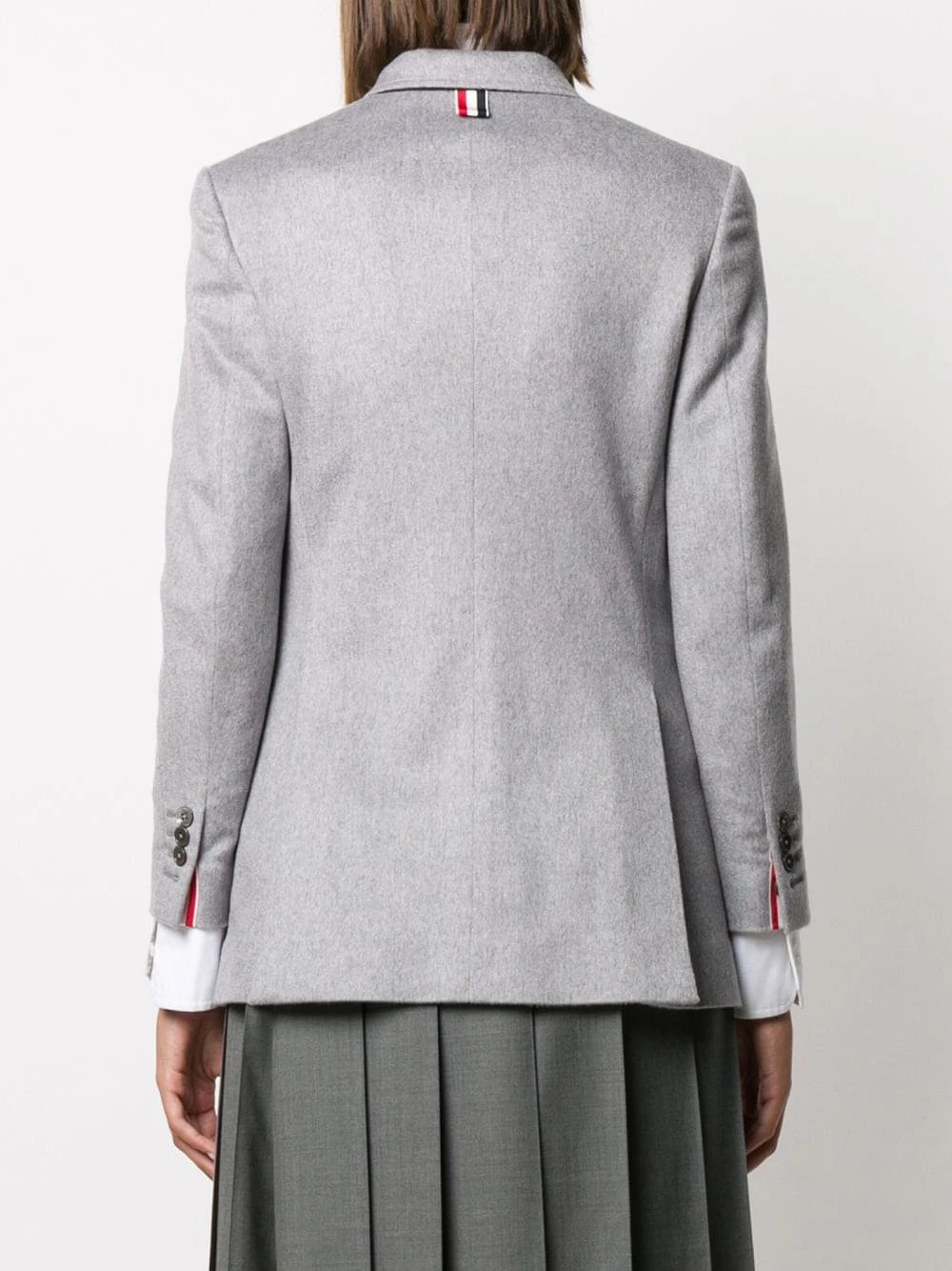 It’s always best to take a jacket, but you’ll already be wearing your Thom Browne piece. Crafted from cashmere, with wide lapel, long buttoned-cuff sleeves and two front flap pockets. You’re covered.