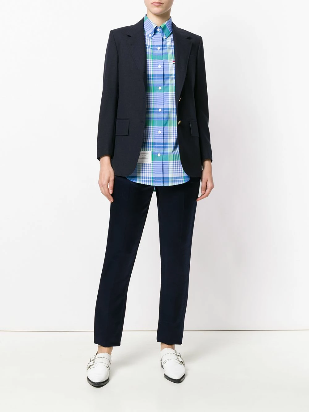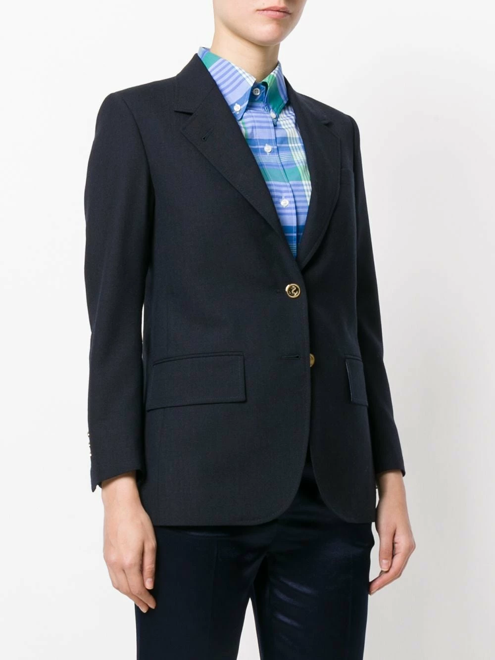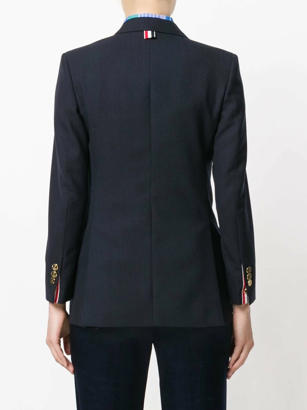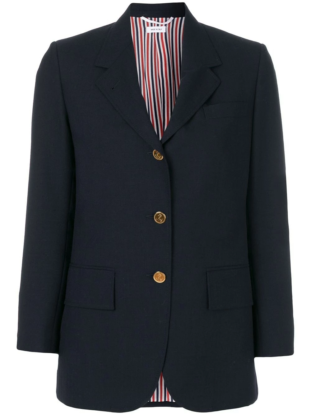 You’ll catch us wearing this navy sport coat during our Spring Break in Monaco, after docking our sailboat for a casual stroll. “Excusez-moi, I’m wearing Thom Browne”. Featuring notched lapels, a front button fastening, long sleeves, front flap pockets, button cuffs and a rear central vent.