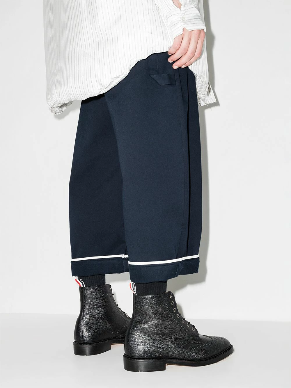 Showcasing punch-hole detailing that extends to the toecap, these brogue boots feature a classic wingtip design. Crafted from pebbled leather, the pair is finished with Thom Browne’s grosgrain loop tab.