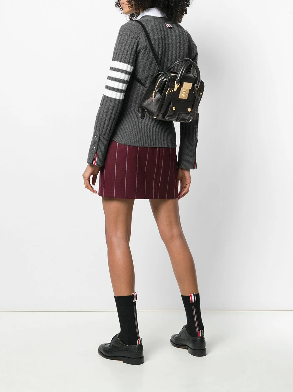 Thom Browne’s newest edit captures the immaculate craftsmanship and minimalist designs that have come to define the American label. Case in point: this deer skin Zip-Top Mrs. Thom Mini Backpack. Featuring round top handles, adjustable shoulder straps, a clasp fastening, a main internal compartment, an internal slip pocket, a hanging leather tag and a front pocket.